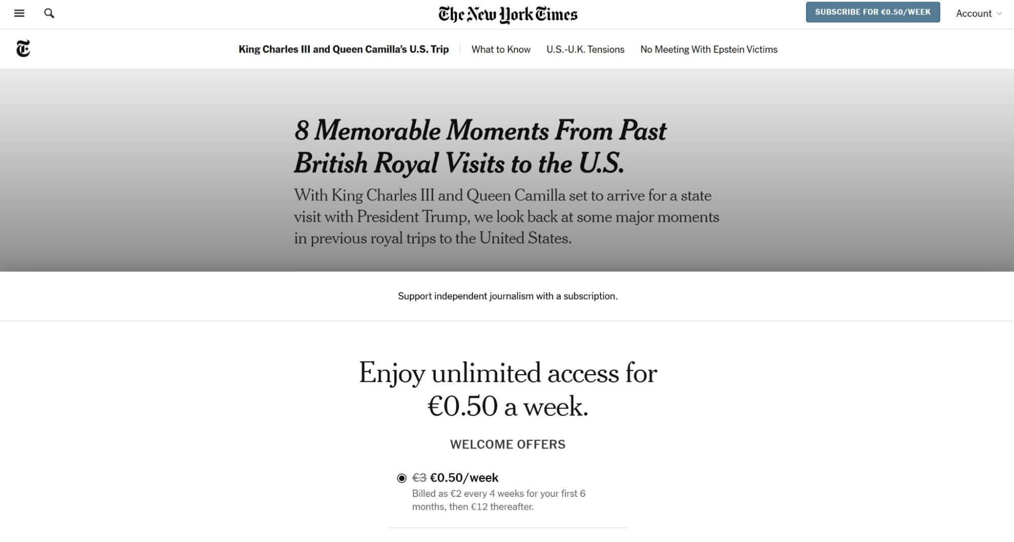 Paywall Example; Image Source: The New York Times