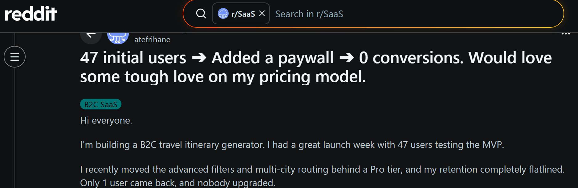 After Paywall, Conversions Tanked; Image Source: Reddit