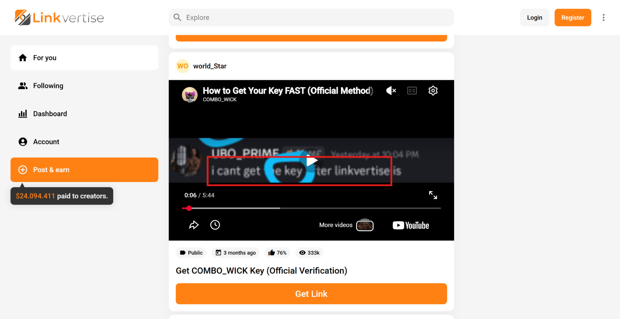 Very long and complicated link-retrieval process – even one of their creator is sharing a video right on Linkvertise teaching their users how to bear through the Linkvertise key-retrieval process, and he becomes frustrated with the process. Imagine a first-time organic user getting on one of these links.