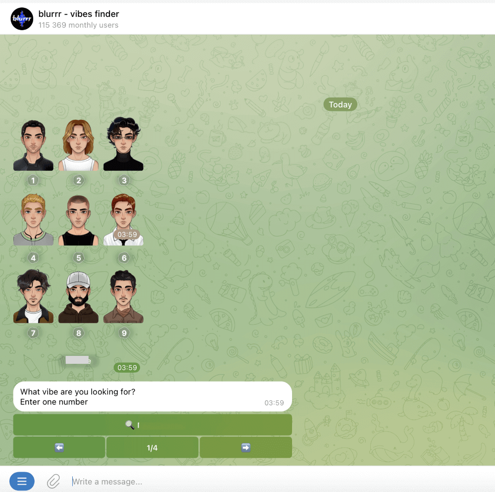 That’s all about dating, anonymous chats, and other social activities. These bots work like Tinder-style apps built directly into Telegram. They match people without switching between different apps, and that’s exactly why users love them: everything happens instantly, in the same messenger they already use.