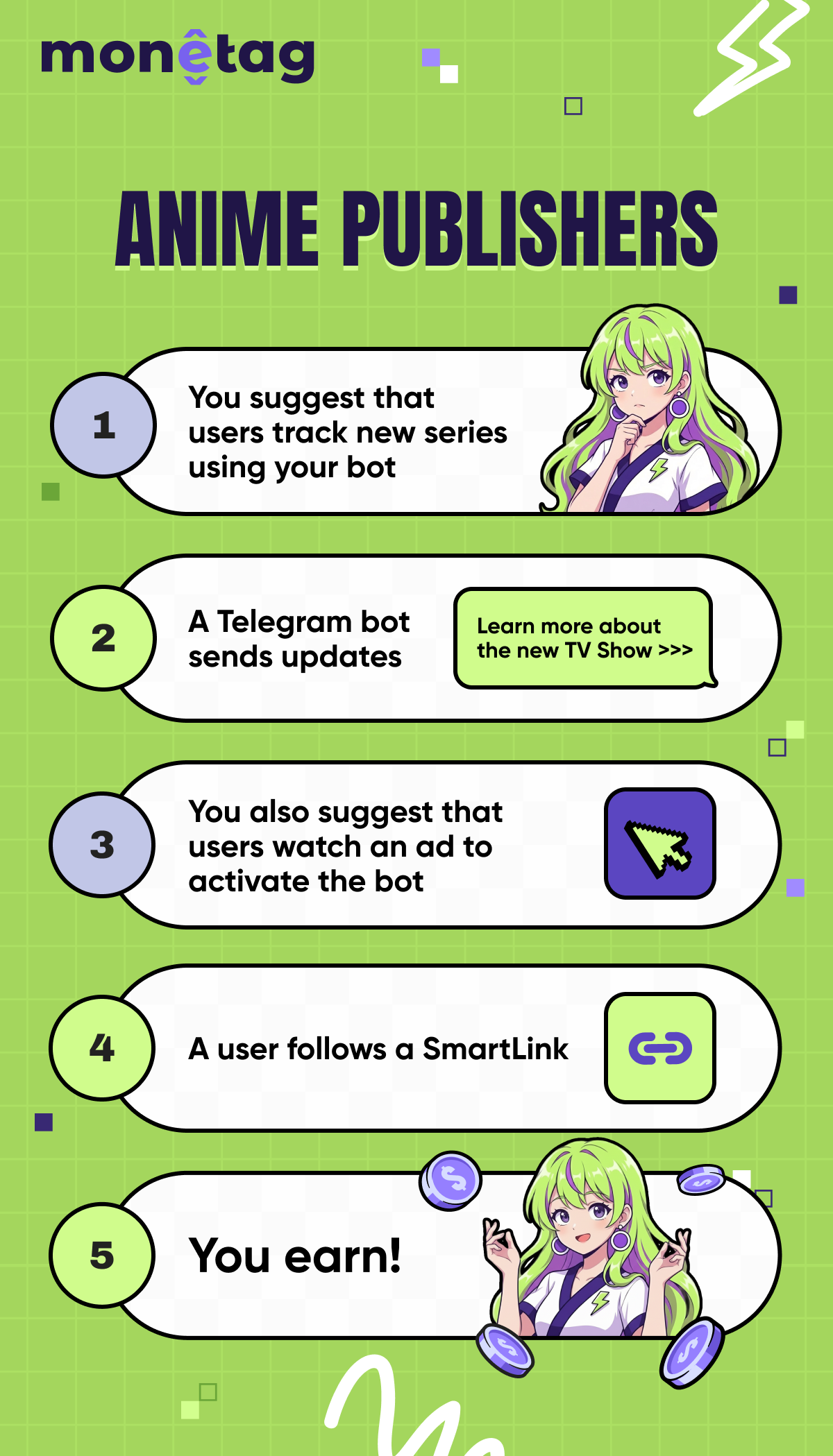 If a user follows the Smartlink, the system automatically shows a relevant ad or offer. A user interacts with this ad, and you earn!